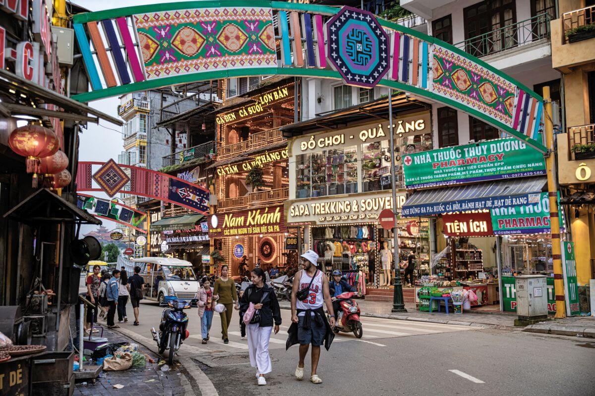 Wir starten den Tag mit einer wahren Kurvenorgie entlang eines zerklüfteten Stausees. Die Strecke führt durch eine der am dünnsten besiedelten Regionen Vietnams – vorbei an alten Wasserrädern, dunkelgrünen Teehängen und verstreuten Holzhäusern, hinein in die wilde Bergwelt des Nordens. Wir passieren kleine Dörfer und Märkte, auf denen Frauen der Hmong und Dao ihre farbenfrohen Stoffe anbieten. Der Duft von gegrilltem Fleisch mischt sich mit Benzin, Holzrauch und Dschungel – ein Geruch, der typisch ist für Nordvietnam und sofort hängen bleibt. Kurz vor unserem Tagesziel wartet ein echtes Highlight: der legendäre O Quy Ho Pass. Mit seinen endlosen Serpentinen und spektakulären Ausblicken gilt er als „König der nordwestlichen Gebirgspässe“ – ein Traum für jeden Motorradfahrer. Am späten Nachmittag erreichen wir Sa Pa – die Perle des Nordens, umgeben von Reisterrassen und schroffen Gipfeln. Das Klima ist hier oben kühler, die Luft klarer. Zwischen fliegenden Hmong-Händlerinnen, französischen Cafés und duftenden Garküchen wirkt Sa Pa fast europäisch – und doch unverkennbar vietnamesisch.